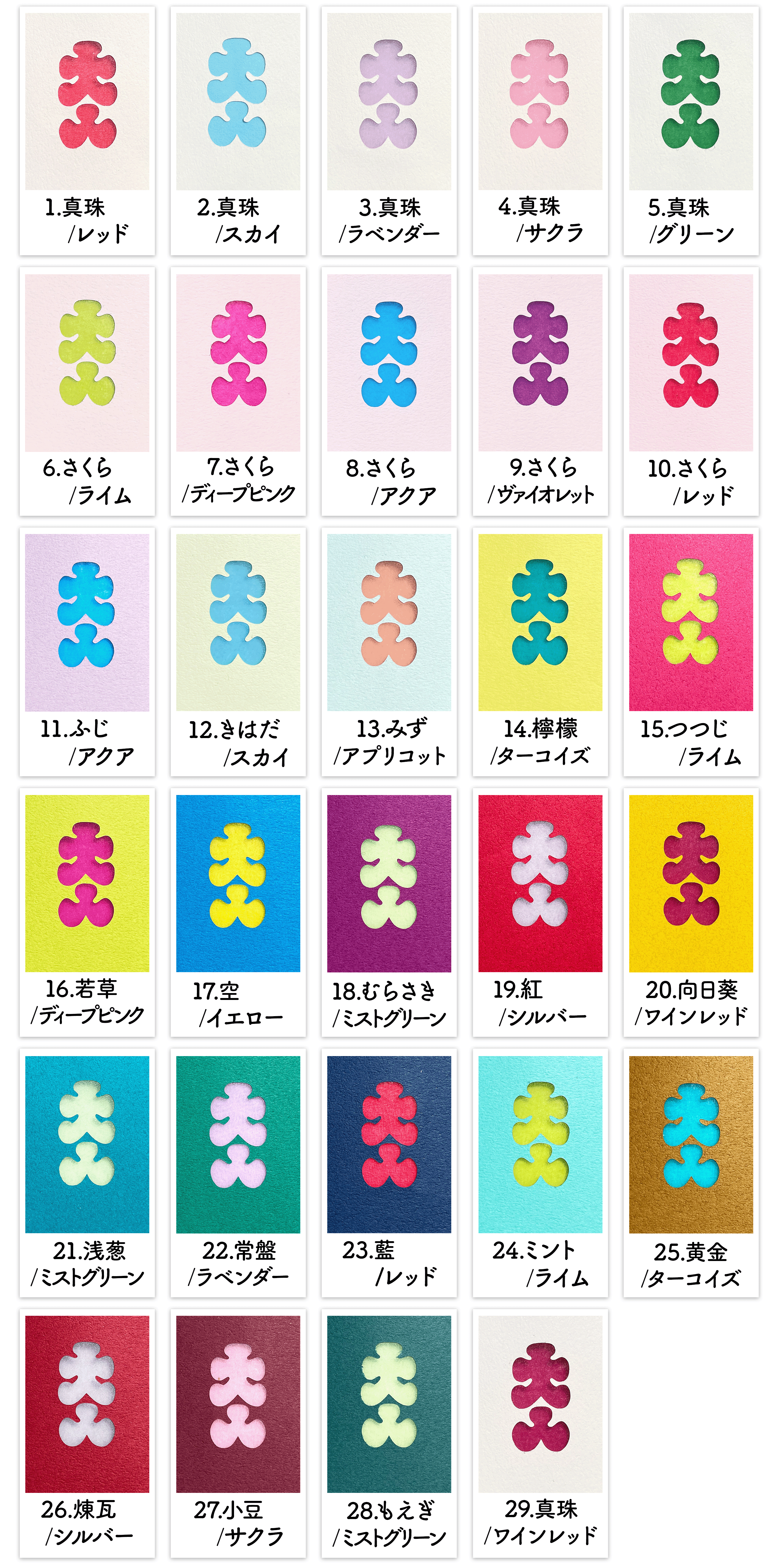 29種類のカラーバリエーションから選択いただいた、1種類6枚入りになります。